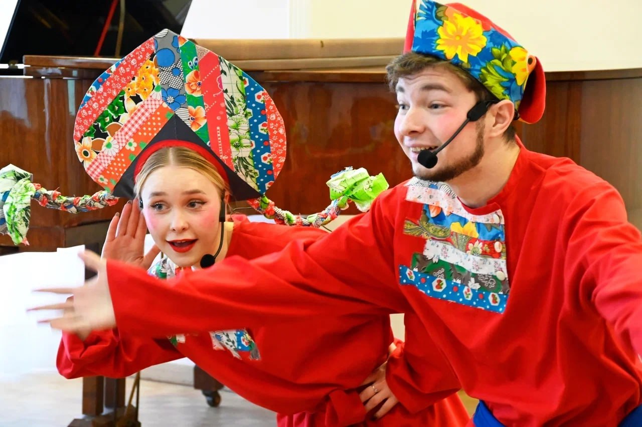 Лектор-музыковед Кристина Радченко рассказала гостям о корнях и традициях праздника, а народная артистка ЛНР Наталия Олефиренко вместе со скоморохами — Алиной Семыкиной и Артуром Цепиловым — увлекли зал в интерактивную игру.