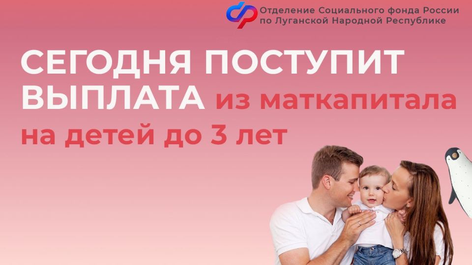 Сегодня семьям с детьми в Луганской Народной Республике на карты «Мир» поступит выплата из материнского капитала на детей до трех лет.
