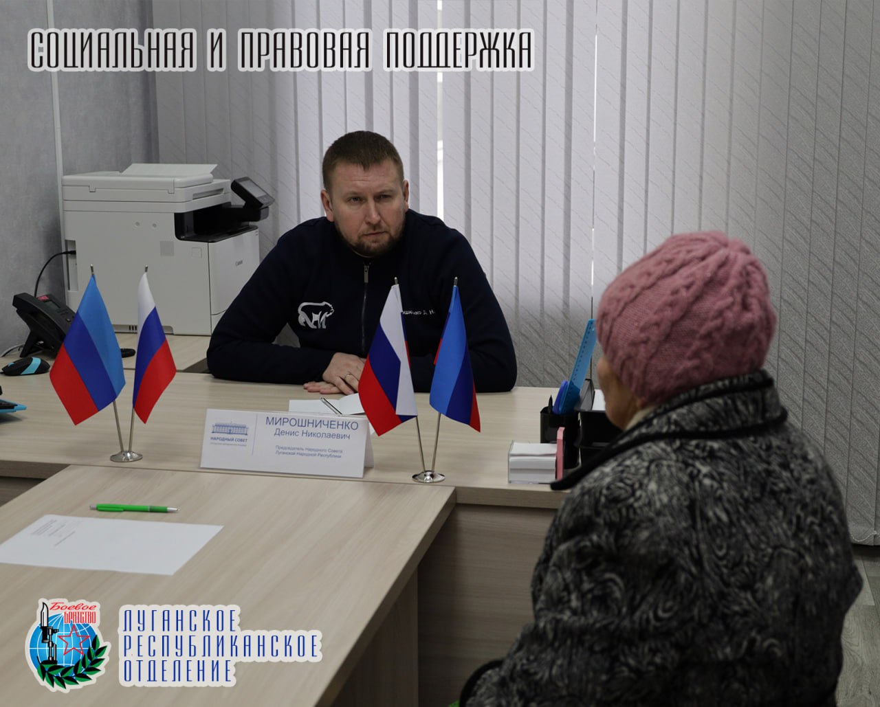 20 января Денис Мирошниченко Председатель Народного Совета Луганской Народной Республики, член Совета Луганского республиканского отделения Всероссийской общественной организации ветеранов «БОЕВОЕ БРАТСТВО» провел прием граждан в Луганске.