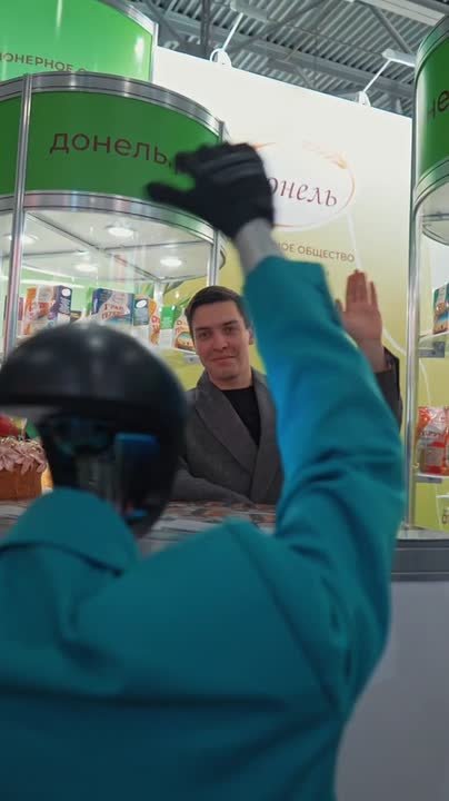 В третий день выставки ПРОДЭКСПО-2026, стенд ТМ "Донель" посетил робот Гоша, который был приятно удивлен ассортиментом выпускаемой продукции.