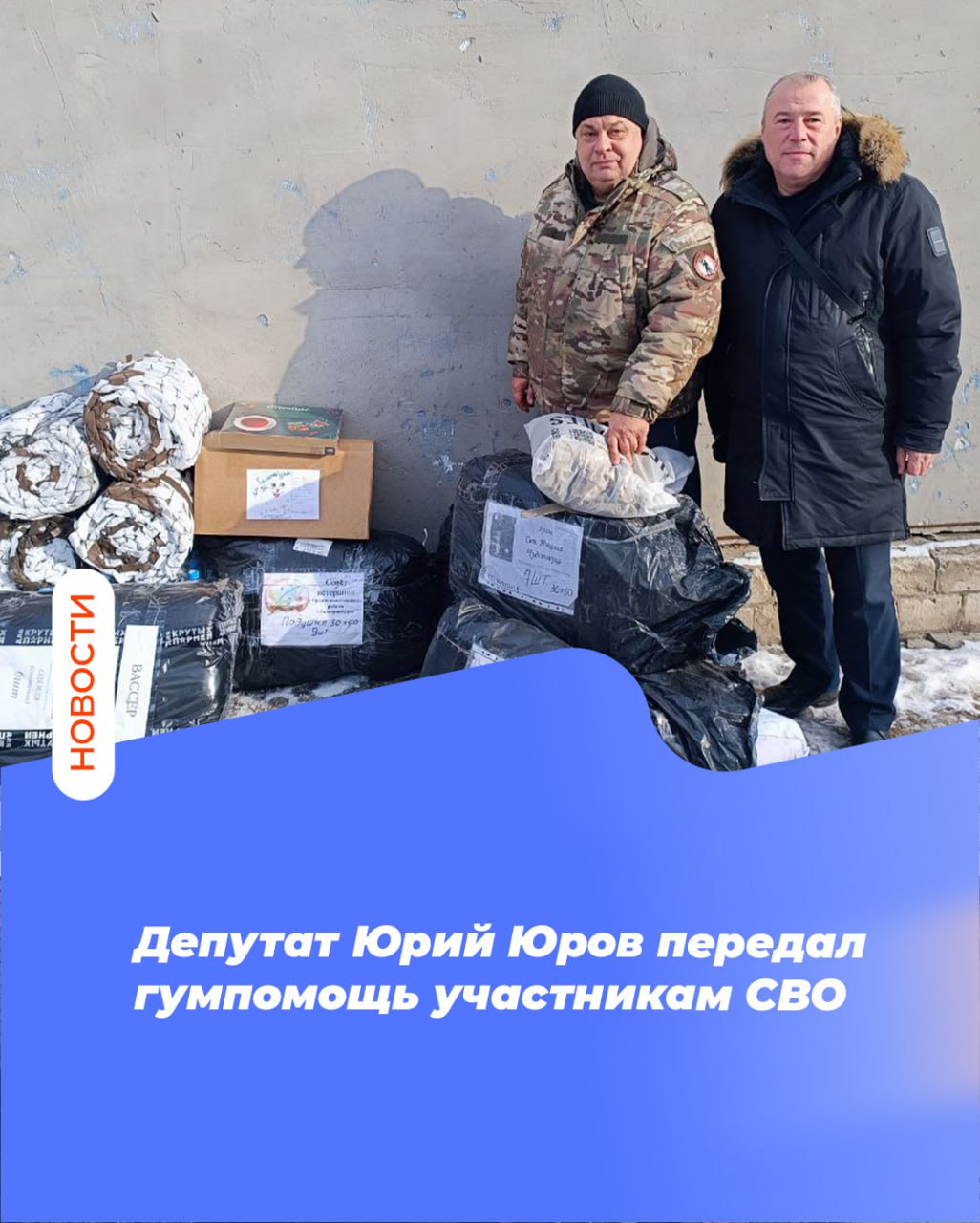 Депутат Юрий Юров передал гумпомощь участникам СВО