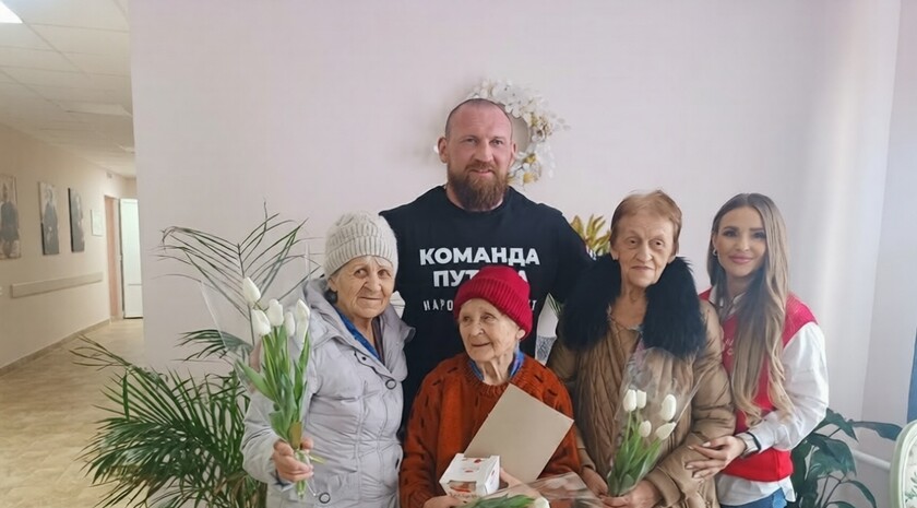 Известный боксер Дмитрий Кудряшов поздравил с 8 Марта постоялиц богадельни в Камышном