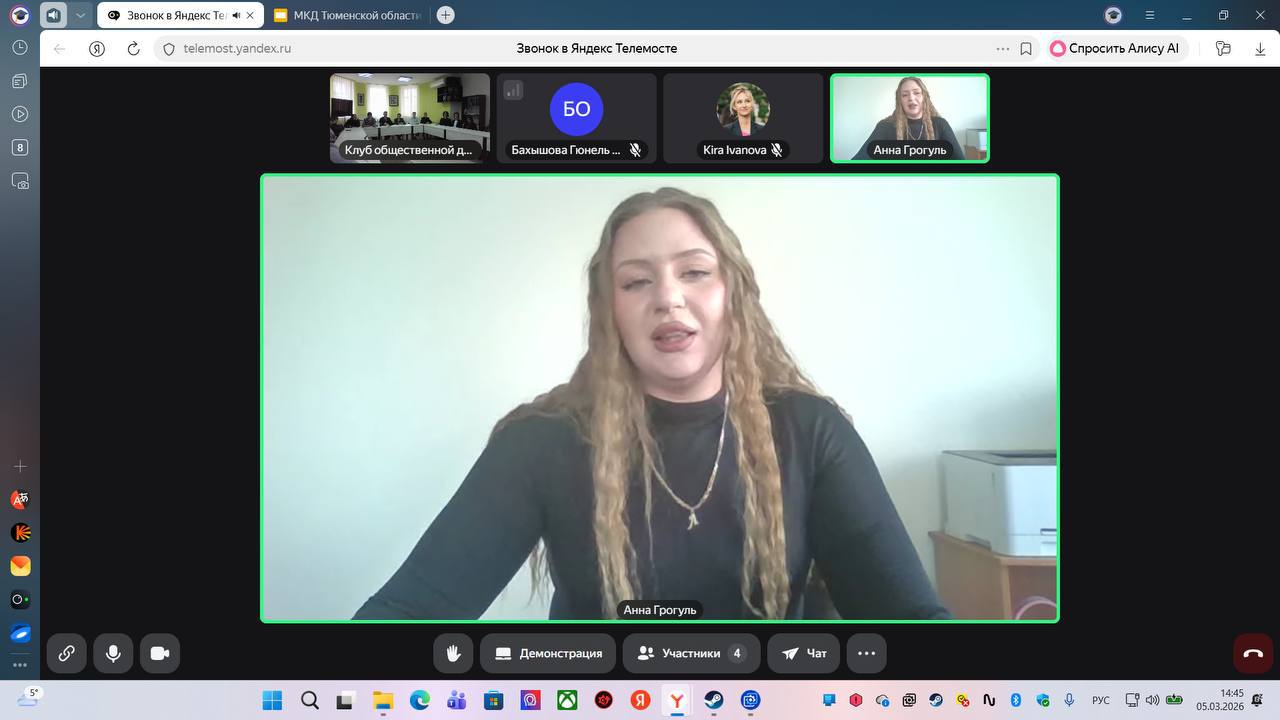 Состоялось также выступление руководителя Международного клуба дружбы Тюменской области (г. Тюмень) Гюнель Бахышовой и директора Центра молодежной дипломатии ЛЕГАТУС (г. Донецк) Анны Грогуль.