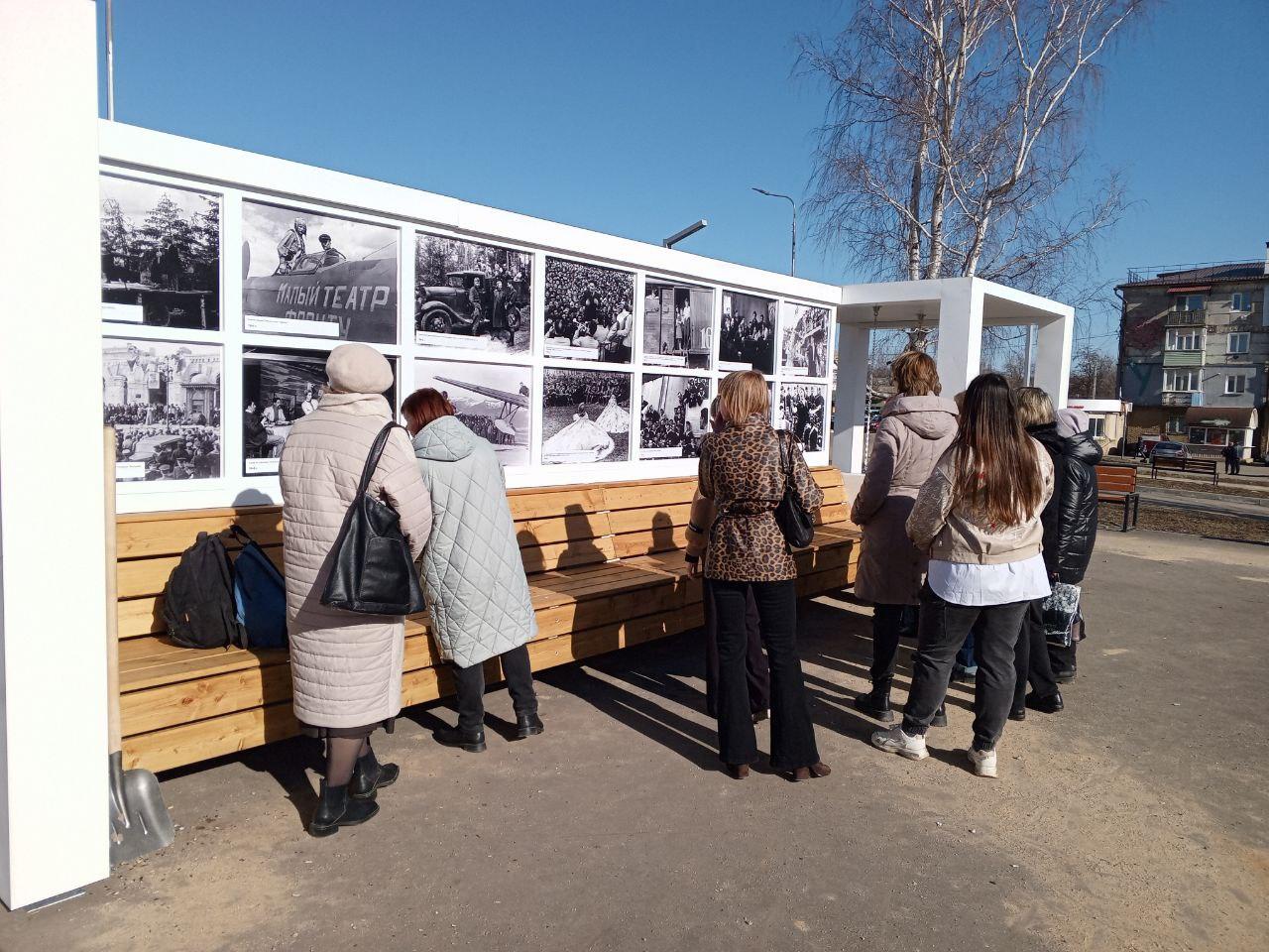 На увеличенных копиях архивных кадров — актеры в походных гримерках и на репетициях между боями. Рядом с инсталляцией поставили качели. Теперь мамы с и детьми гуляют, и знакомятся с историей.