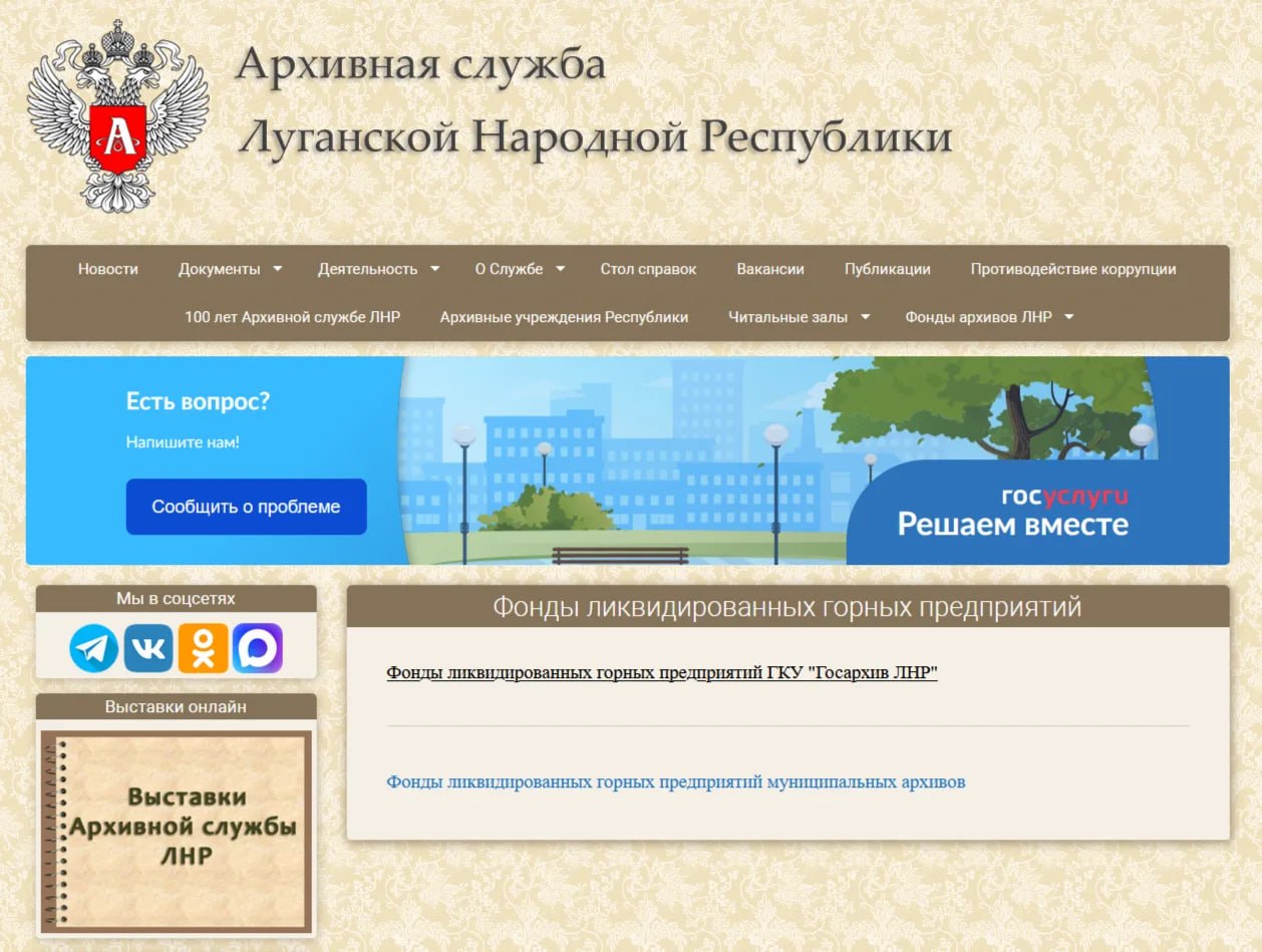 Документы 65 ликвидированных горных предприятий находятся на хранении в Государственном архиве ЛНР по адресу: Луганск, улица Шеремета, 7, 7а.