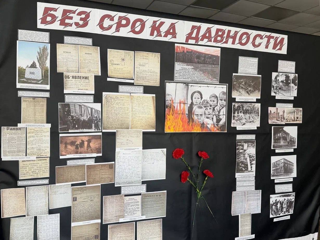 В Управлении Росреестра по Луганской Народной Республике организована тематическая выставка «Без срока давности», где сотрудники ведомства могут ознакомиться с материалами о зверствах, совершенных в отношении мирного населения нашего региона в период оккупации.
