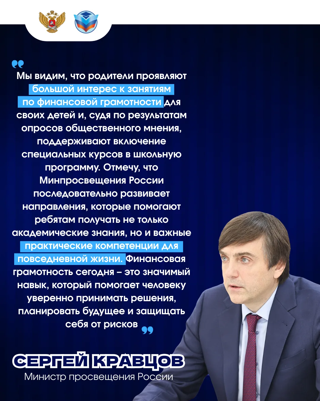 В школе пригодится не только таблица умножения. Всё больше школьников и их родителей в стране интересуются вопросами финансовой грамотности. Об этом заявил глава Минпросвещения России Сергей Кравцов: родители всё чаще поддерживают введение курсов, которые помогают детям разобраться в деньгах ещё до выпускного.