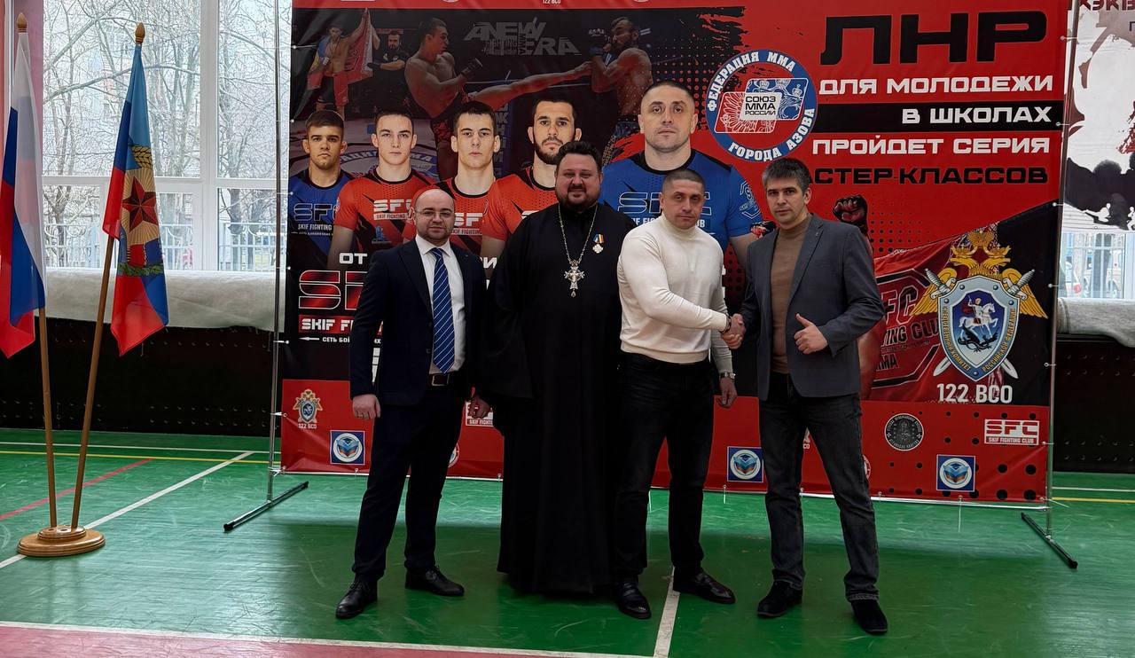 В гости к воспитанникам Луганского УВК «Интеллект» приехали настоящие легенды — бойцы команды «Скиф», мастера спорта по ММА. Вместе с ними на мероприятие прибыла целая делегация почётных гостей, включая Министра спорта ЛНР Олега Шереншева и руководителей федераций ММА из ЛНР, Мариуполя и Азова.