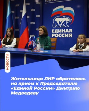Председатель «Единой России» Дмитрий Медведев провел традиционный прием граждан в день рождения партии. С вопросом к нему обратилась многодетная мама из ЛНР Марина Архипцева. У нее трое детей, все занимаются спортом, но возле дома нет спортивной...